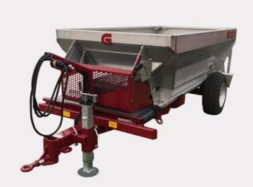 Low profile trailed orchard spreader for spreading either Organic or manufactured fertilizers in kiwifruit